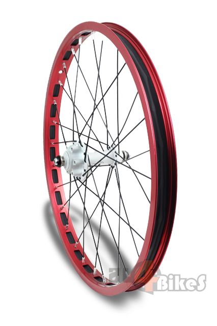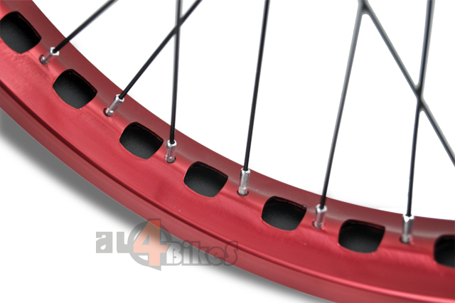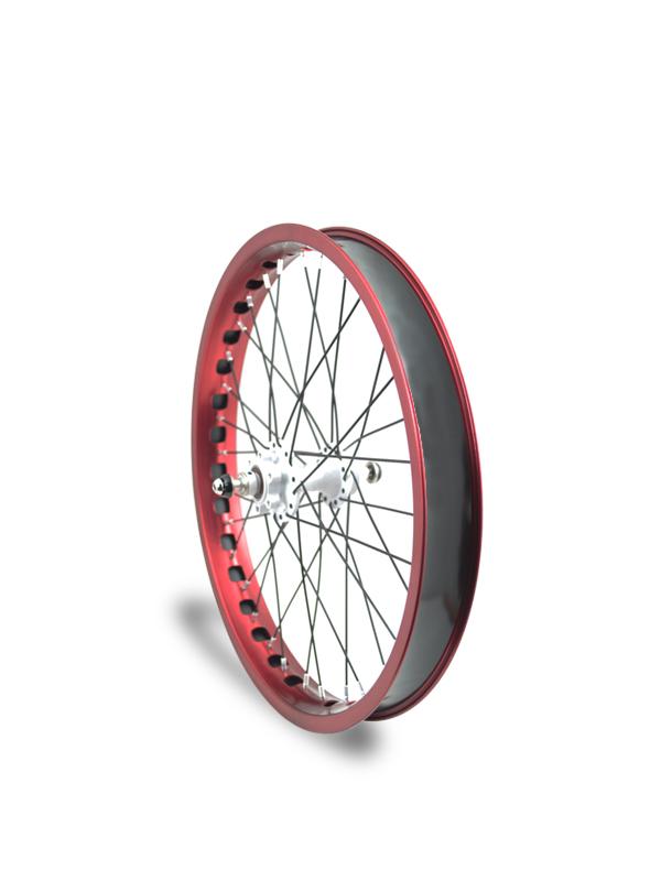 -Llanta ligera en color rojo anonizado.