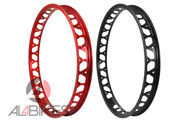 -Preparada para tanto freno de Disco como de llanta (lateral anodizado rojo).