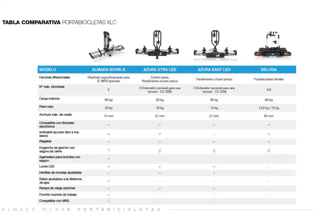 máximo de ruedas 80mm, máxima distancia entre bicis 1250mm. No apto