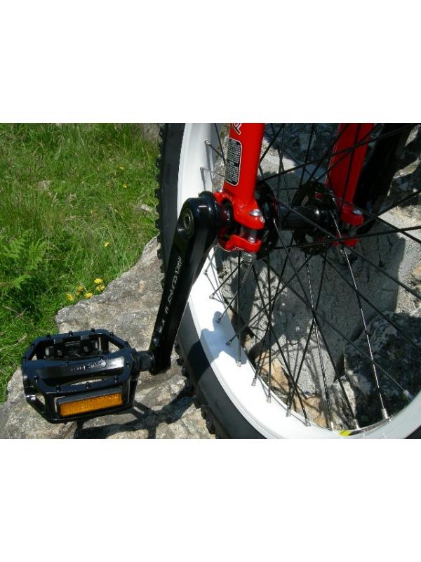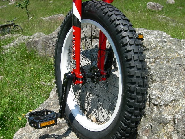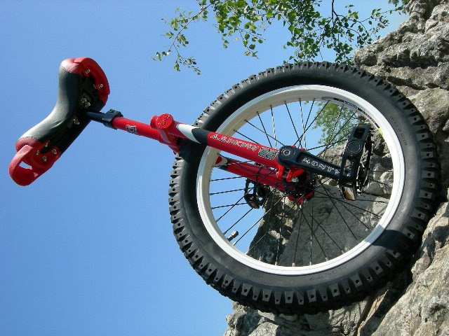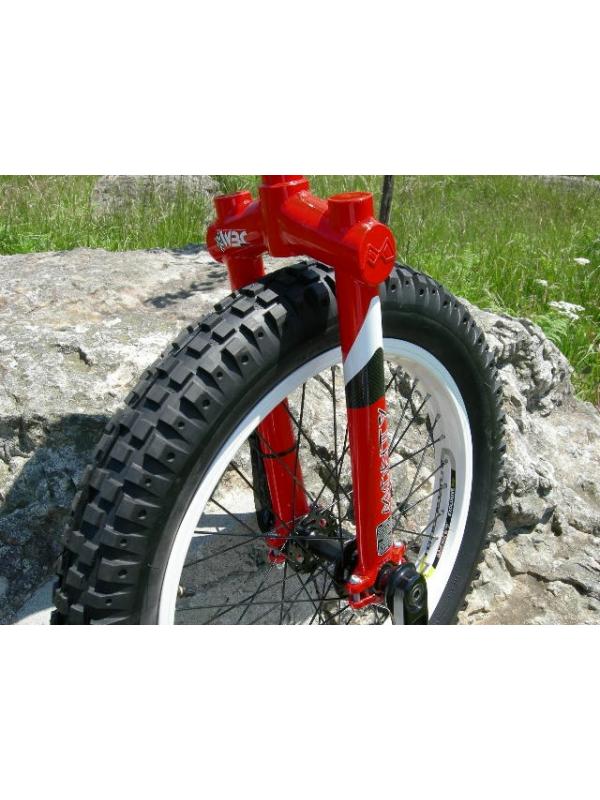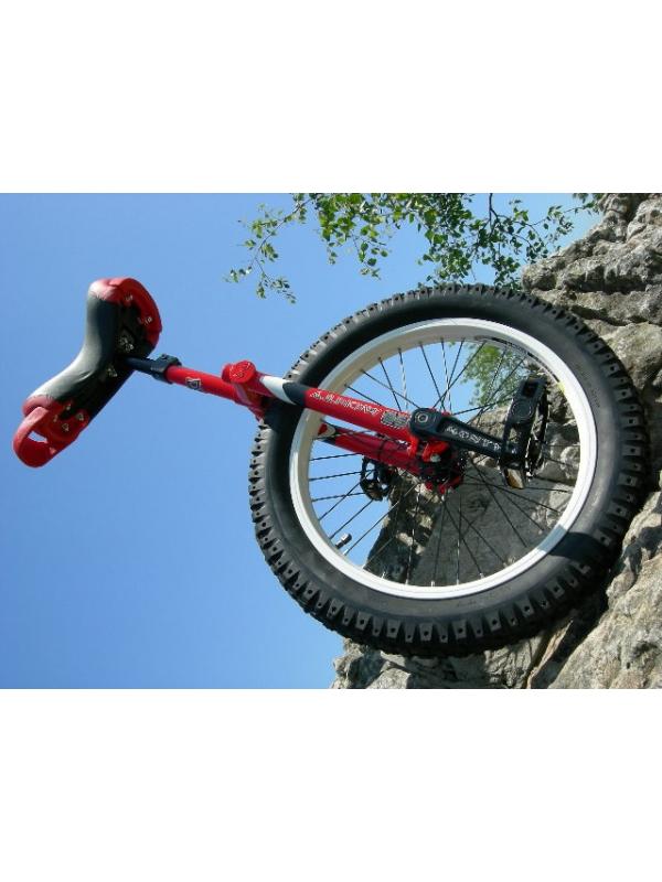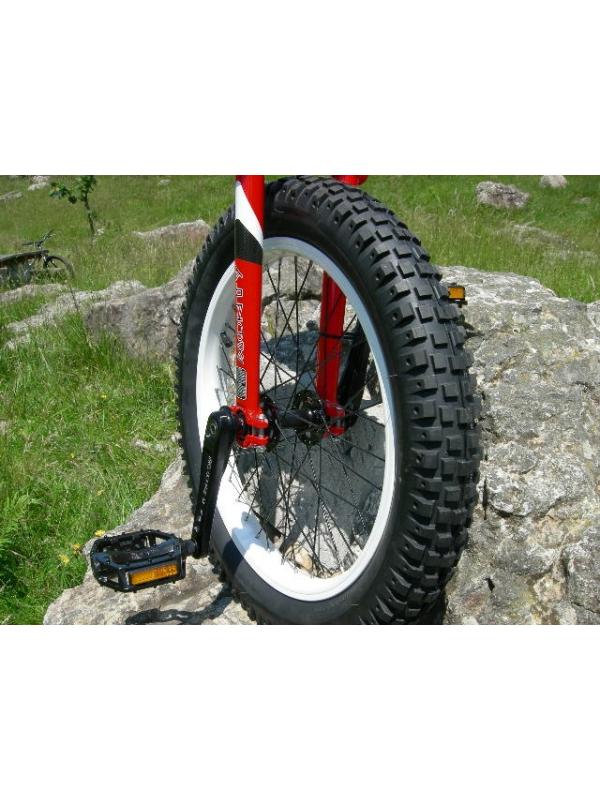-La prática más extrema del trial en monociclo exige unas prestaciones en la montura, que Monty ha sabido dar a su modelo, de forma magistral. El Unicycle de trial va equipado con unas bielas de aluminio 6061, tipo isis, de máxima calidad, llanta de 19" y neumatico "Eagle Claw" de 2.6. Es la máquina de los campeones
