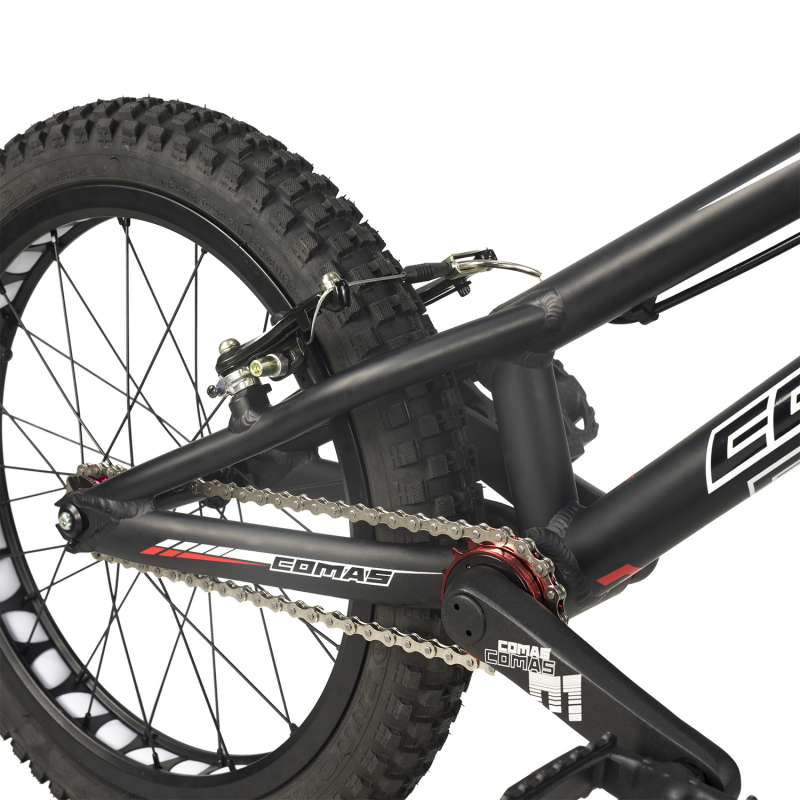 - Buje trasero: Comas Ultraligero 116mm 32 radios, eje roscado 10mm, Rosca 1.37x24T