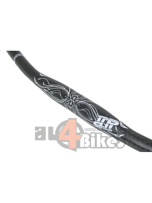Este manillar esta compuesto por un 50% Carbono y otro 50% Aluminio. Gracias a esta mezcla de materiales, la resistencia será mucho mayor y no correrás el riesgo de rotura debido a un impacto como ocurriria en uno de carbono. Este manillar pesa tan solo 264gr y tiene una anchura de 71cm.