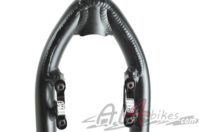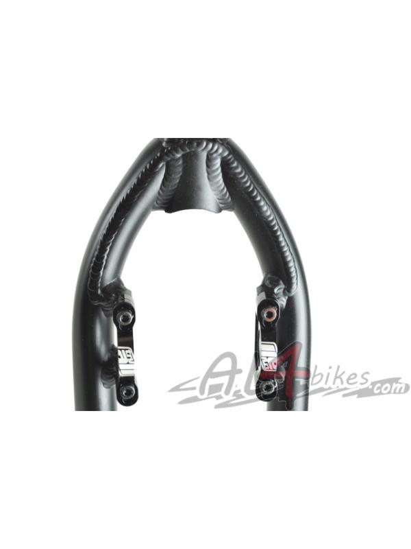 -El chasis esta pasado mediante un chorro de granalla con toque anonizado y seriegrafia hecha por laser en negro.Caracteristicas de la horquilla: