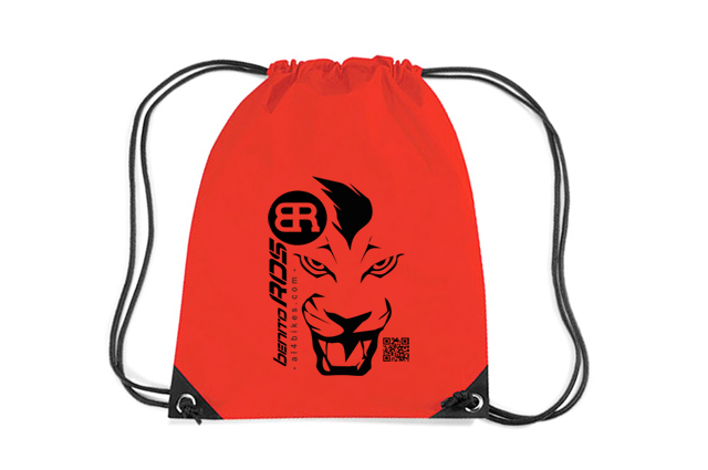 -Acabado de la bolsa en rojo con los logos en negro.