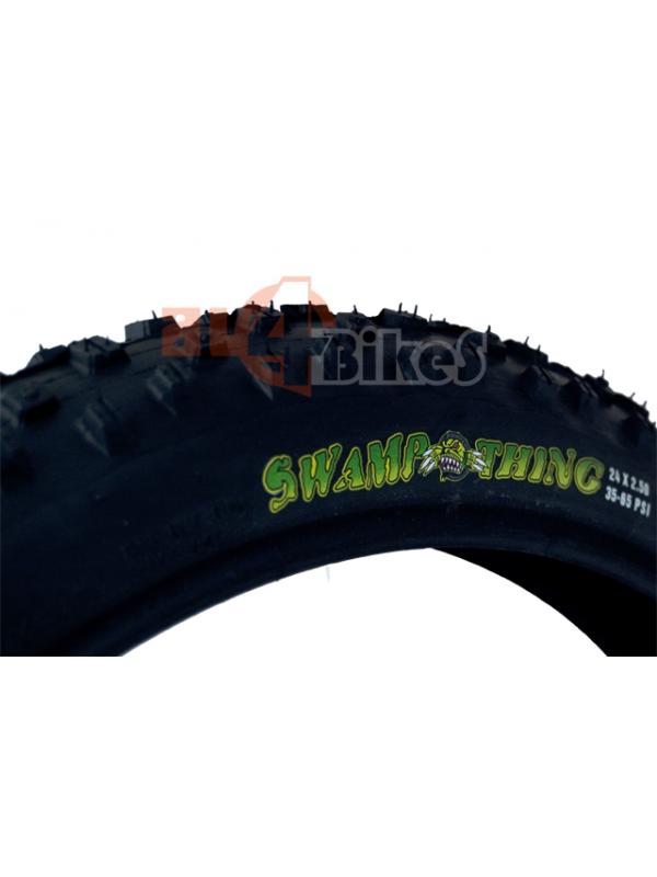 Neumático Maxxis Swampthing de 24x2.50 con un peso de tan solo 990gr. El compuesto de goma es de 42a. Ideal para terrenos húmedos o con barro, con un gran capacidad de control sobre las curvas y un rozamiento mínimo.