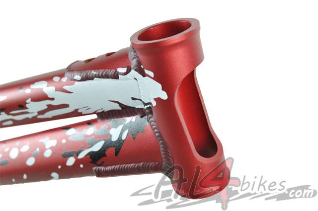 - 115mm long standard headtube is externally butted and machined to save weight. Large cut-out also helps shave excess weight.