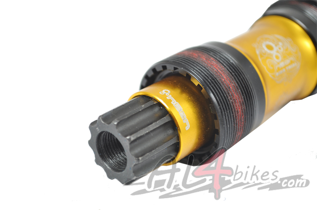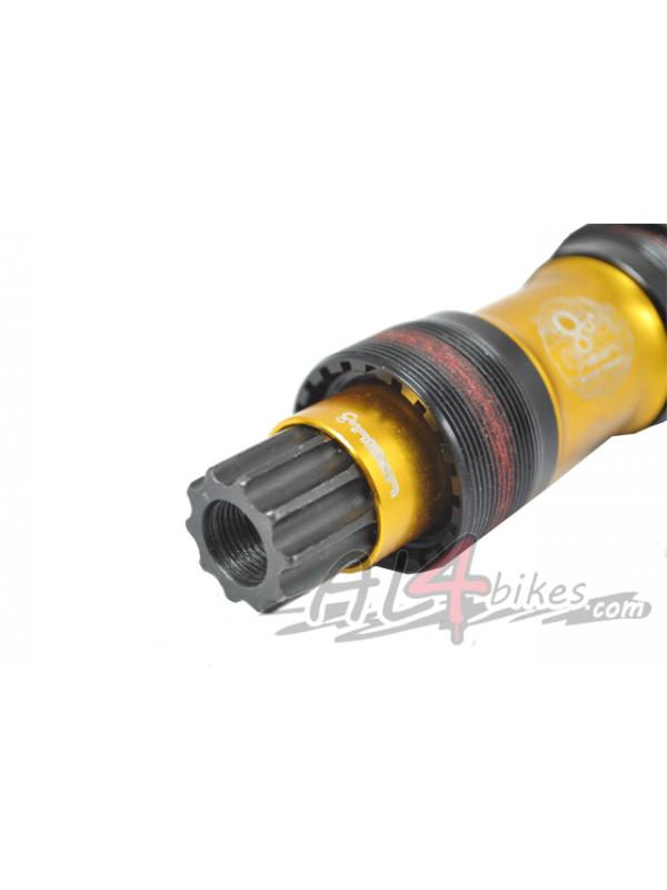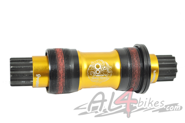 -Neon bottom bracket gold finish.-Total length of 128mm.-ISIS type bottom bracket axle.-Steel screws to tighten to the max with washers included.-1.37x24T-standard thread.-Sealed bearings.-Gold-anodized finish.-Weight 356 Gr