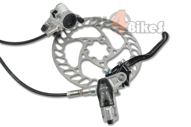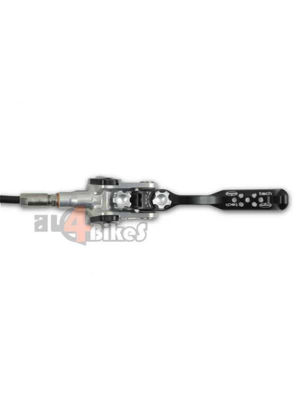 Montaje de maneta Tech en un Freno Hope Mono trial. El equipo de Al4bikes ha hecho esta mezcla después de haberla probado durante un corto plazo, dado que su rendimiento salta a la vista. La potencia de frenada aumenta gracias a la nueva bomba Tech, la nueva geometría de la maneta y su nuevo sistema interior de bomba hacen aumentar aun más la frenada. Aun siendo más pesado te da unos beneficios de ajuste y tensado de pastillas de una manera sencilla que la bomba Mono es incapaz.