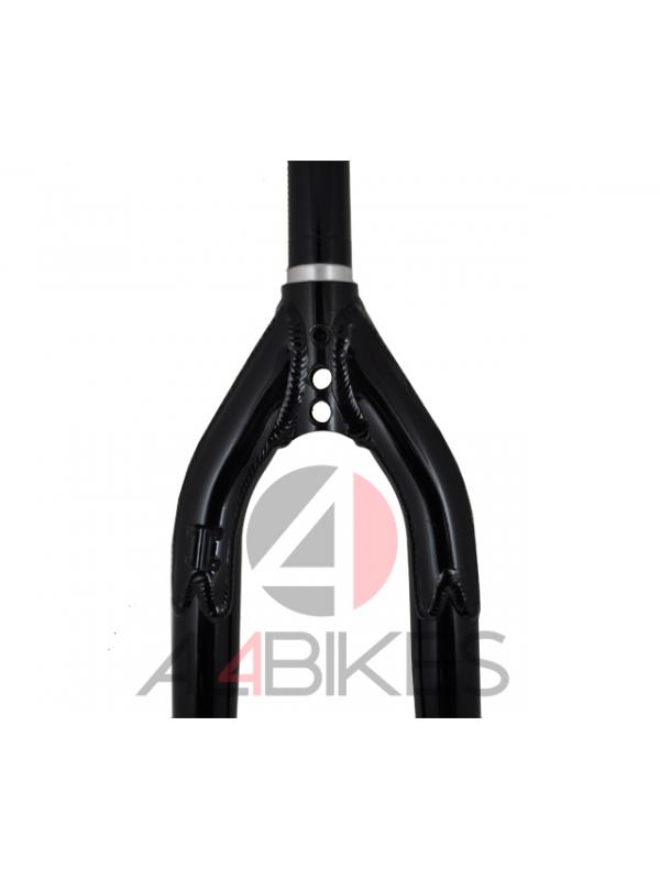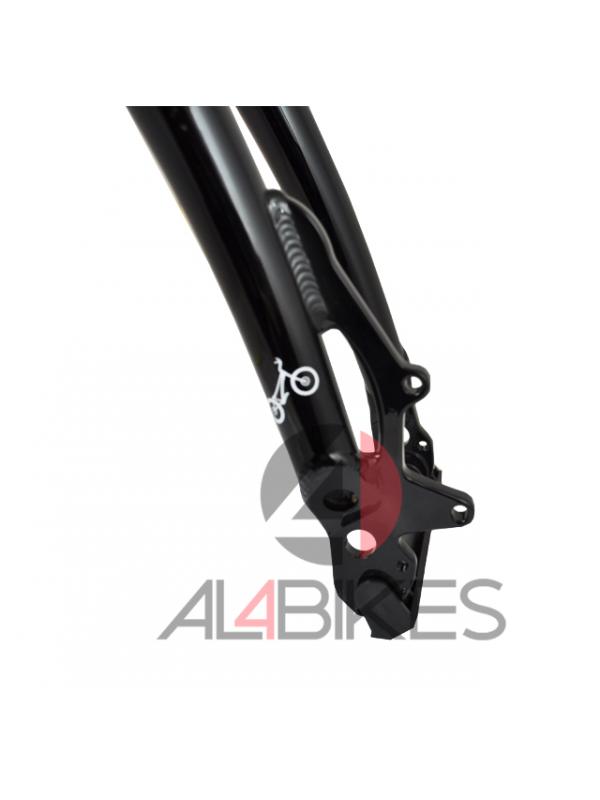 -Fork Monty 6061-T6 aluminum disc brake.-Seat-Cr-Moly Light.-Reinforced arms to the inside.-Finished in glossy black.-Support for disc brakes.-Starnud included.-Measures of the fork: 100mm axle width, stem length 175mm.-Weight 702 Gr