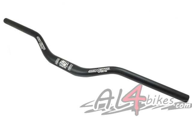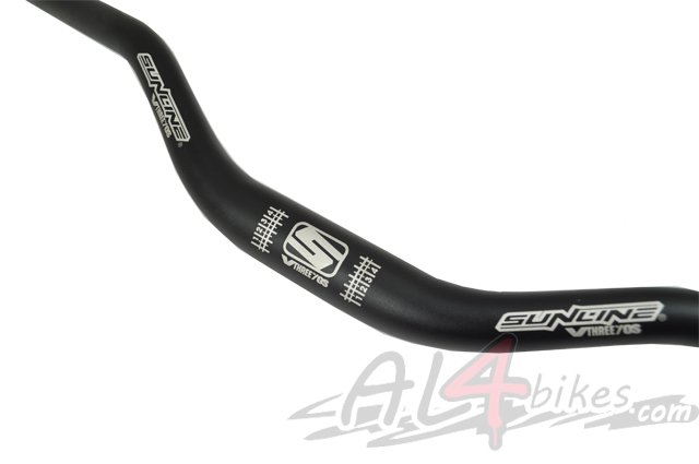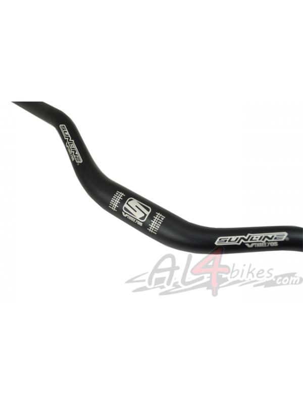 -Sunline Handlebar-Ios.-Aluminum Composite 7075.-A total width of 70 cm.-Diameter of 31.8mm.-Double-height quite pronounced.-Finished completely in black with silver silkscreen.-Height gauge in the center.-Weight 369 Gr