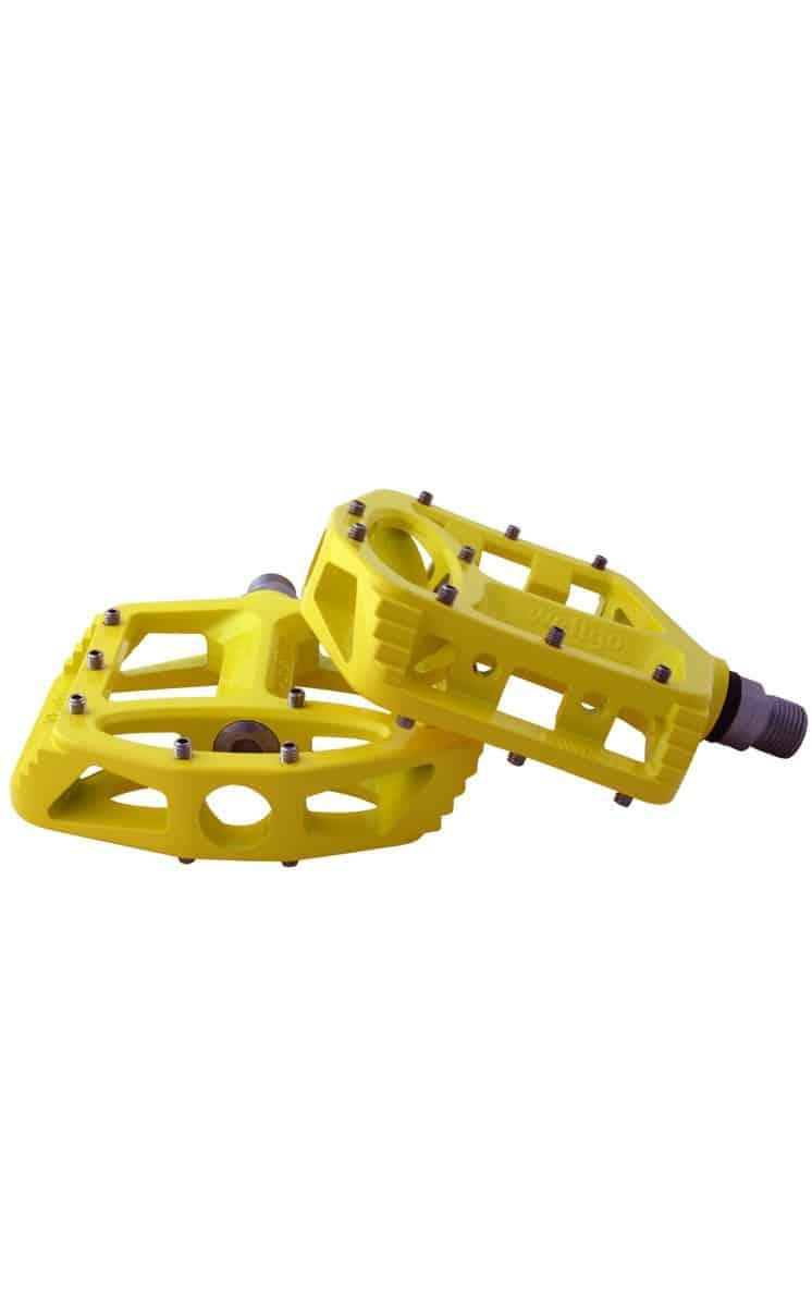 Pedales Wellgo plataforma de magnesio color amarillo.