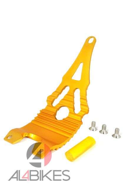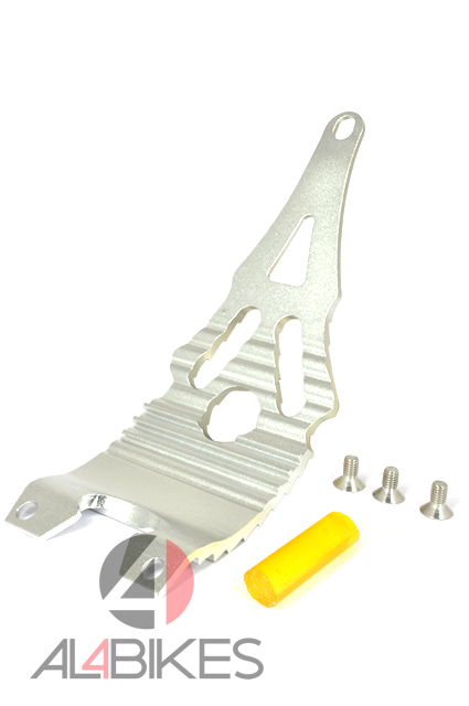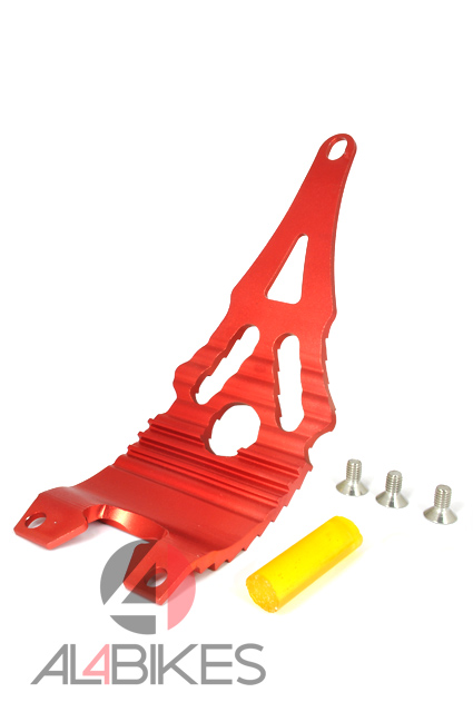-Neon Light Protector.-Composite Aluminum 6061-T6 .-Special toothing eight holes to lighten the weight.-Three screws, three washers and rubber spacer included.-Finished in Red, Gold, Black and Silver.-Plate-Weight 106 Gr